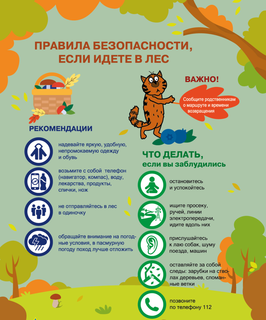 Перед выходом в лес обязательно предупреди родных, куда идёшь.